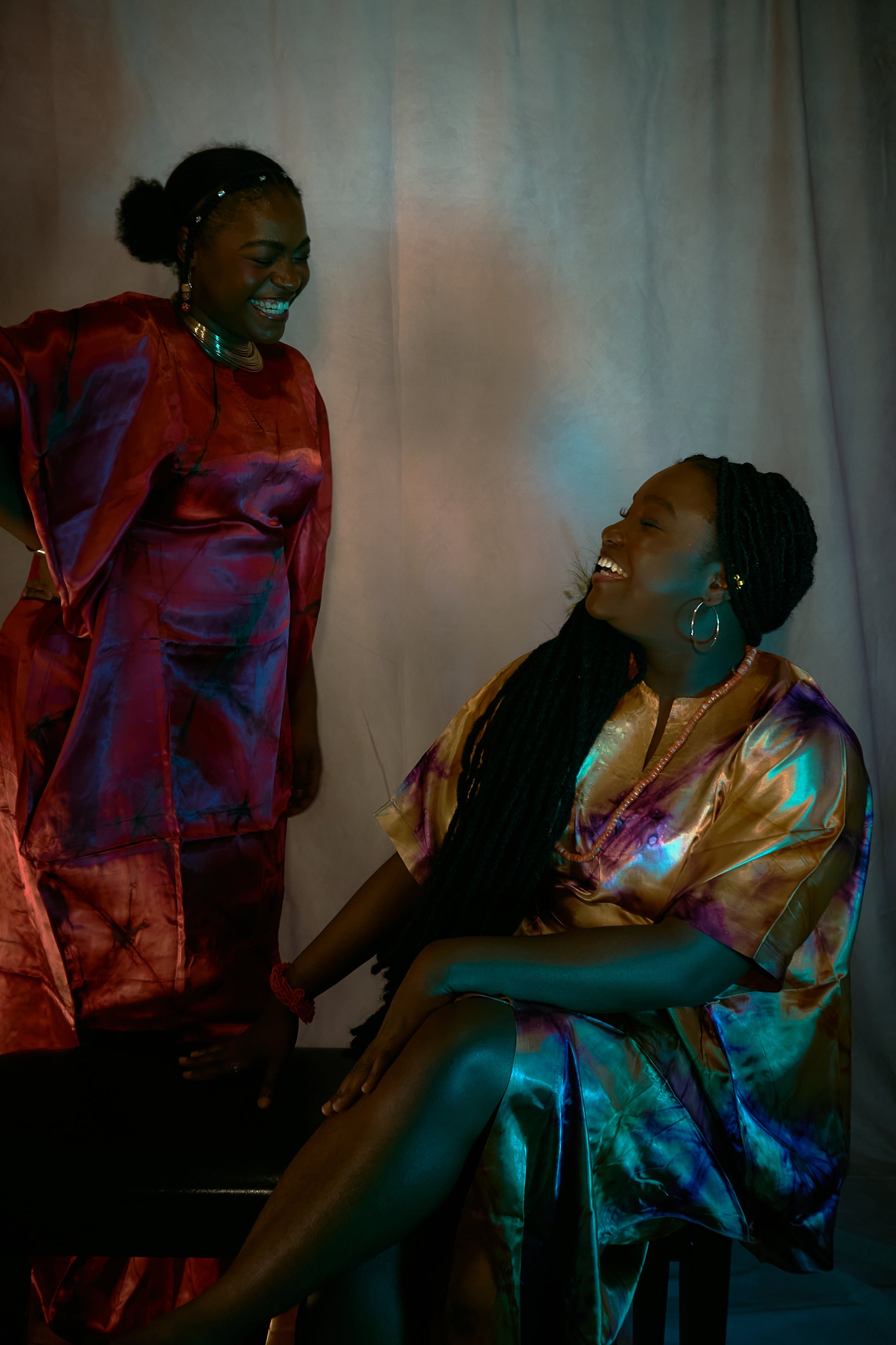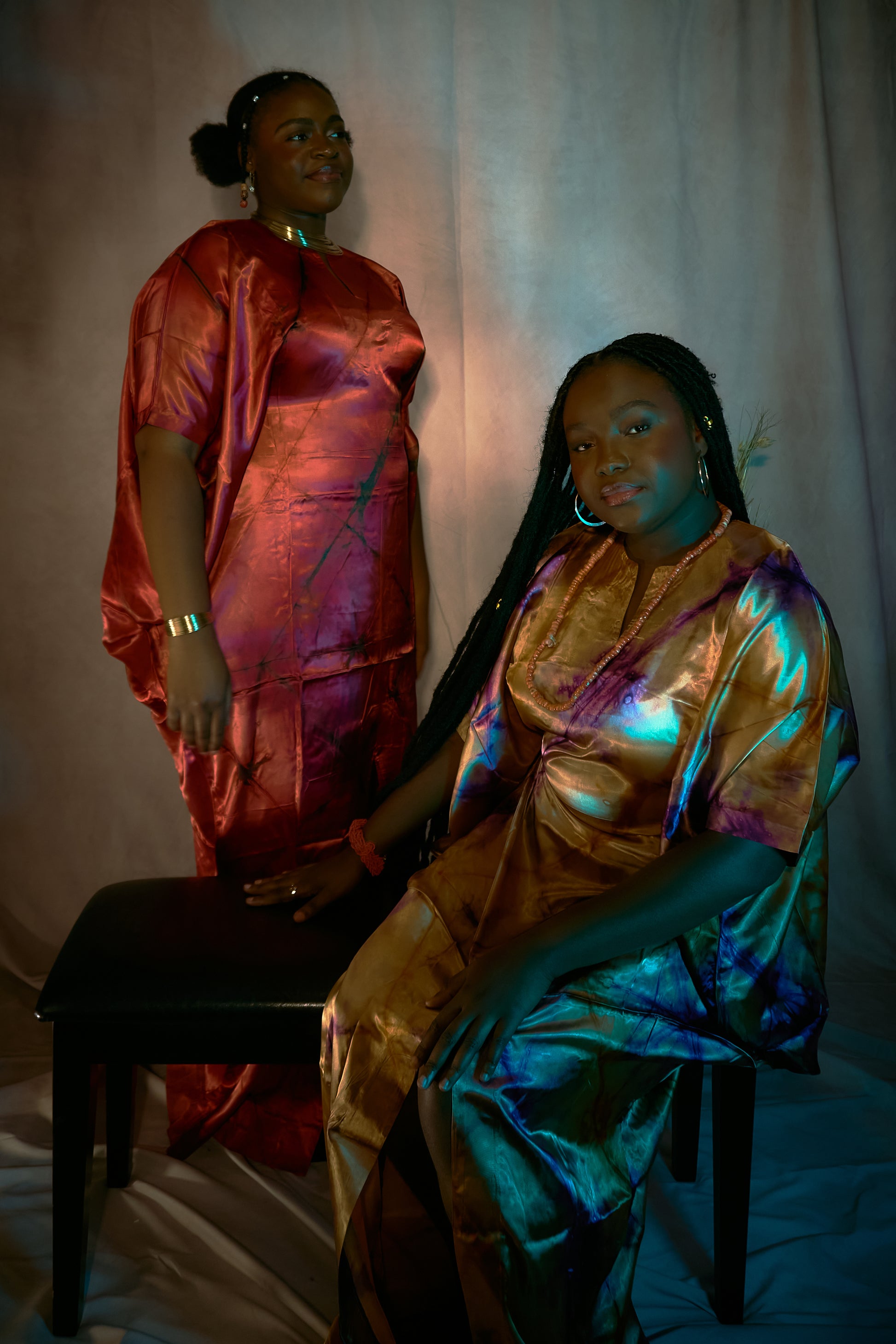 Turn heads with this vibrant and playful tie-dye kaftan dress! Featuring a bold mix of blue, gold hues, this lightweight satin dress features a slit at the front for a fun ,flirty look. Perfect for summer parties, festivals, or a standout casual look, it offers a relaxed fit and effortless style.